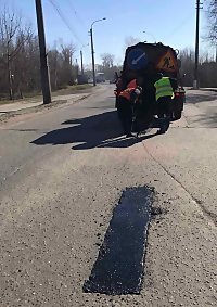 Условия контракта на ямочный ремонт предполагают, что почти 80% объемов будет выполнено литой смесью с обрубкой краев. Этот способ применяется для устранения глубоких и крупных повреждений. Струйно-инъекционный метод позволяет выровнять небольшие ямы и трещины, является профилактикой дальнейшего разрушения покрытия.
