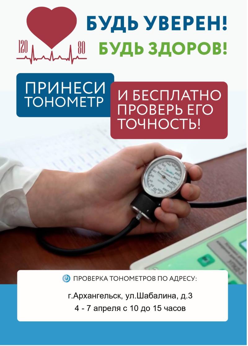 Акция продлится с 4 по 7 апреля 2025 года. В Архангельске бесплатно проверить бытовой тонометр можно будет в по адресу: ул.Шабалина, д.3.