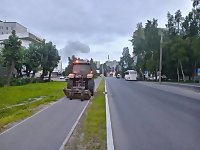 Силы специализированной техники сосредоточены на механической очистке и мойке проезжей части дорог, параллельно идёт мойка и подметание тротуаров, автобусных и парковочных карманов, прилотковой зоны проезжей части.