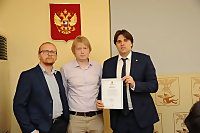 Открывая заседание, Даниил Шапошников вручил дипломы победителям открытого архитектурного конкурса на лучший эскиз остановки общественного транспорта в Ломоносовском округе. Победителем был признан Андрей Солнцев. Его эскиз остановки будет воплощен в Ломоносовском округе. Второе место заняли Константин Матюк и Илья Третьяков. Завершил тройку лидеров коллектив ООО «Кофе Лайк Архангельск».