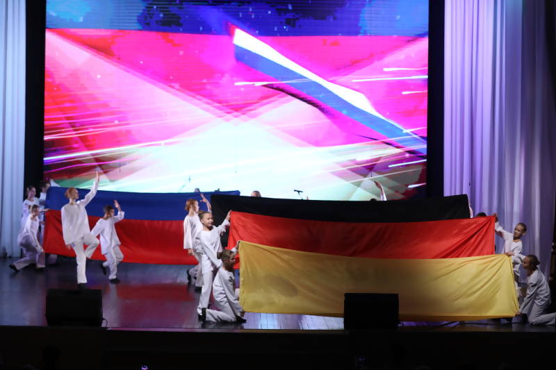 Мероприятие завершилось трогательным исполнением песни «Солнечный круг» на русском и немецком языках: ее слова знакомы всем, поэтому зал стоя подпевал детской вокальной студии «Консонанс».