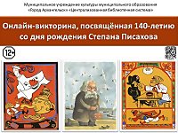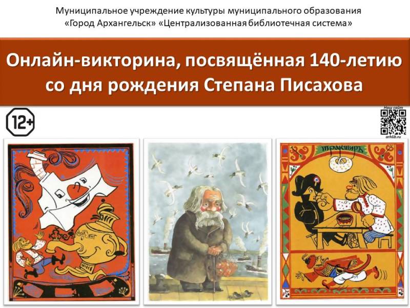 Центральная городская библиотека имени М.В. Ломоносова приглашает всех желающих принять участие в 4-й онлайн-викторине, посвящённой 140-летию со дня рождения Степана Писахова - знаменитого сказочника, известного историями из жизни поморов.