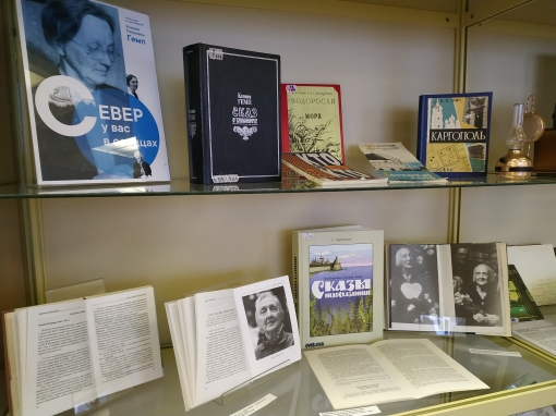 На выставке «Север у вас в сердцах», подготовленной к 125-летию со дня рождения Ксении Петровны Гемп, представлены книги из собрания Ксении и Алексея Гемп.