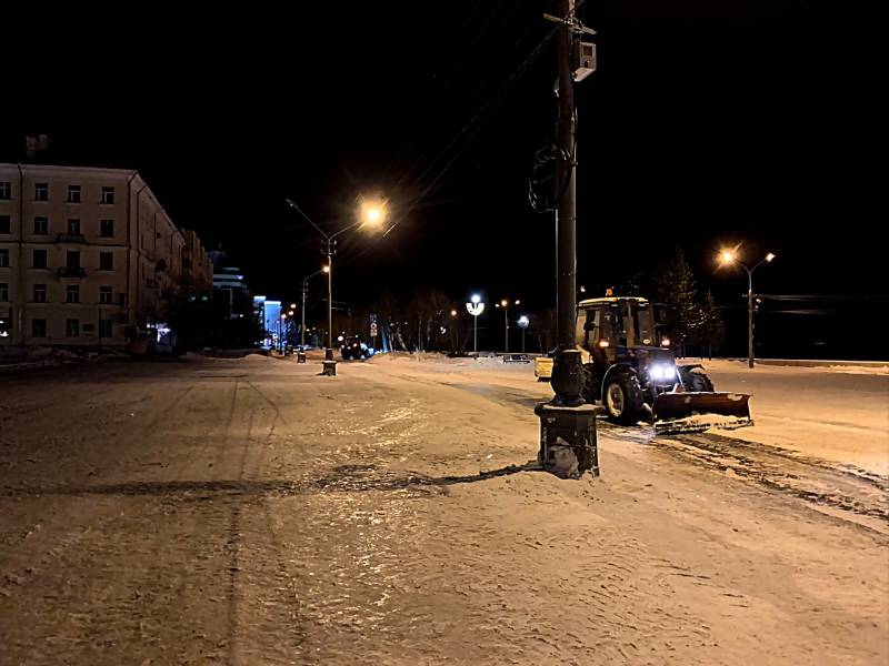Сегодня ночью на расчистке городских улиц работали 57 единиц техники и 25 дорожных рабочих. На посыпку тротуаров и проезжих частей израсходовано 15 тонн песка и 97 с половиной тонн соли.