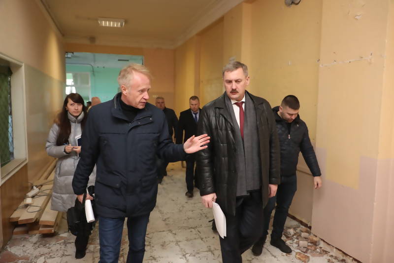 В рамках рабочей поездки глава города Игорь Годзиш проинспектировал ход ремонтных работ в здании общеобразовательной школы № 77, расположенном на ул. Адмирала Макарова.