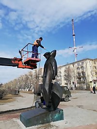 Сегодня на территории Октябрьского округа осуществляется традиционная после зимы помывка памятников. Такая работа проводится ежегодно в первых числах мая.
