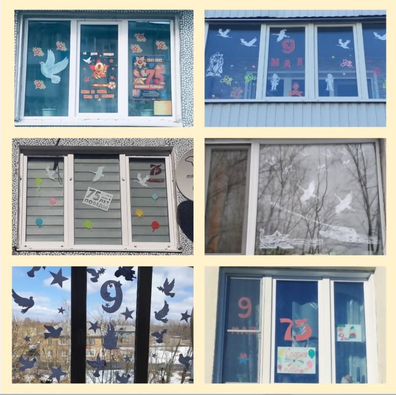 В рамках акции «Окна Победы» участникам предлагалось разместить на окне своего дома макеты силуэтов известных памятников, посвященных Великой Отечественной войне, фигурки журавлей, украсить окна рисунками на тему Великой Отечественной войны или символами Победы.