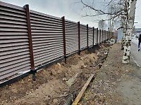 Как сообщил заместитель директора по производству компании «Регион-лес» Алексей Перепёлкин, до конца мая силами подрядной организации планируется провести устройство газона: завезти и разравнять грунт и посеять траву вдоль нового ограждения. Возможность посадки кустов или деревьев будет рассматриваться позже: под землей расположены инженерные коммуникации, наличие которых необходимо учитывать. По этой же причине новый забор был отодвинут ближе к реке.