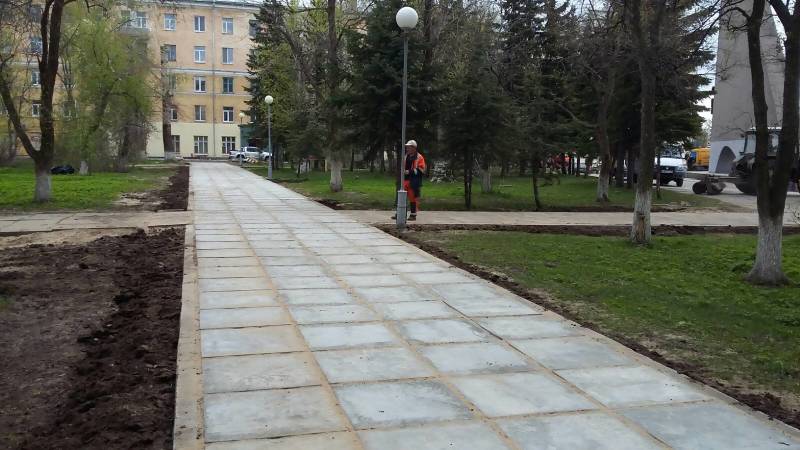 На днях был окончен ремонт тротуара в сквере за кинотеатром «Мир». Работы проводили специалисты МУП «Архкомхоз».