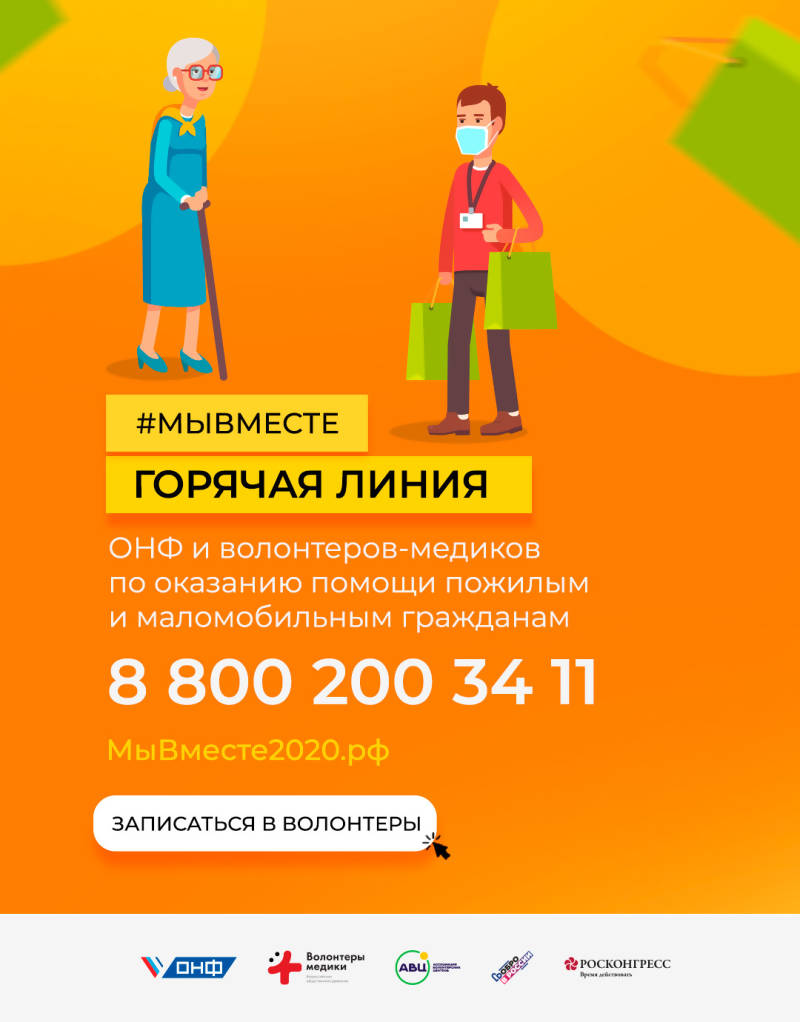 Общероссийская акция взаимопомощи #МЫВМЕСТЕ инициирована Народным фронтом, всероссийским общественным движением «Волонтеры-медики», Ассоциацией волонтерских центров и платформой DOBRO.RU.