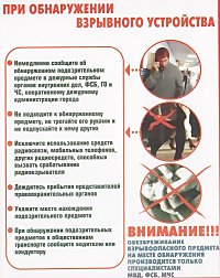 Будьте бдительны! Обращайте внимание на поведение окружающих, подозрительных людей, предметы, на любые подозрительные мелочи, бесхозные и не соответствующие обстановке предметы. Сообщайте обо всем подозрительном сотрудникам правоохранительных органов.