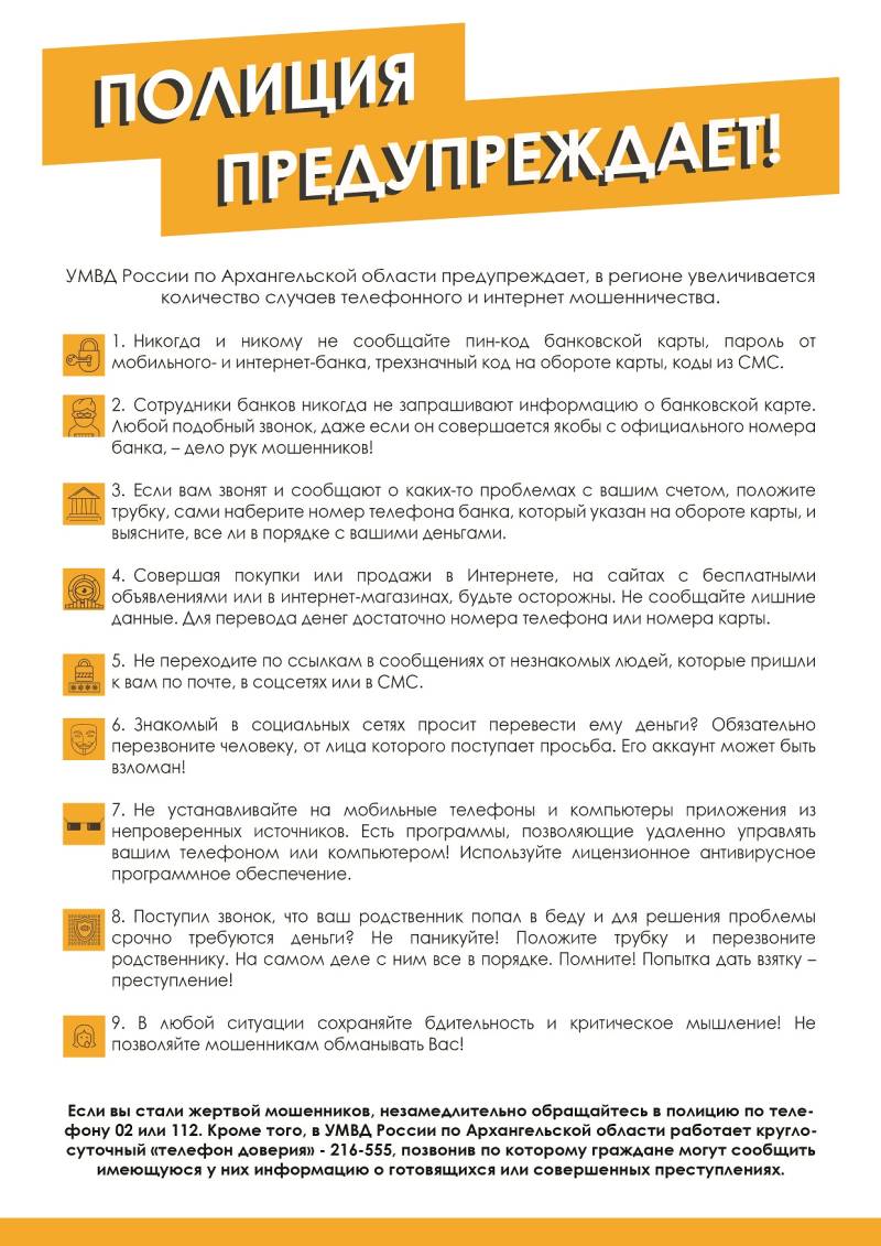 Перепроверяйте любую информацию, поступившую от неизвестных вам людей и учреждений: звоните по официальным телефонам организаций.