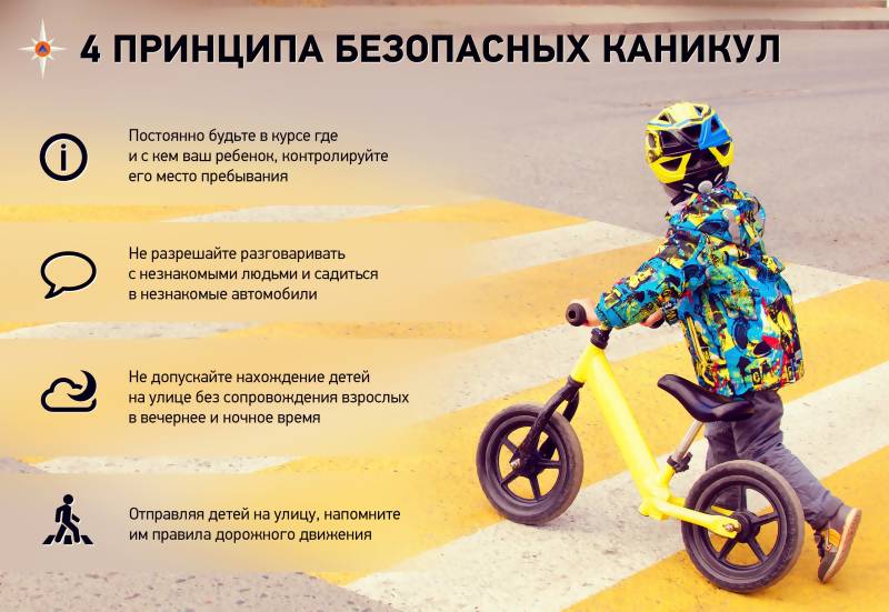 В каникулярный период детей подстерегает повышенная опасность на дорогах, у водоемов, в лесу, на игровых площадках, во дворах. Этому способствует погода, летние поездки и любопытство детей, наличие свободного времени, а главное - отсутствие должного контроля со стороны взрослых.Чтобы дети были отдохнувшими и здоровыми, родителям необходимо учитывать ряд правил и условий организации детского отдыха и заниматься формированием у детей навыков обеспечения личной безопасности:
