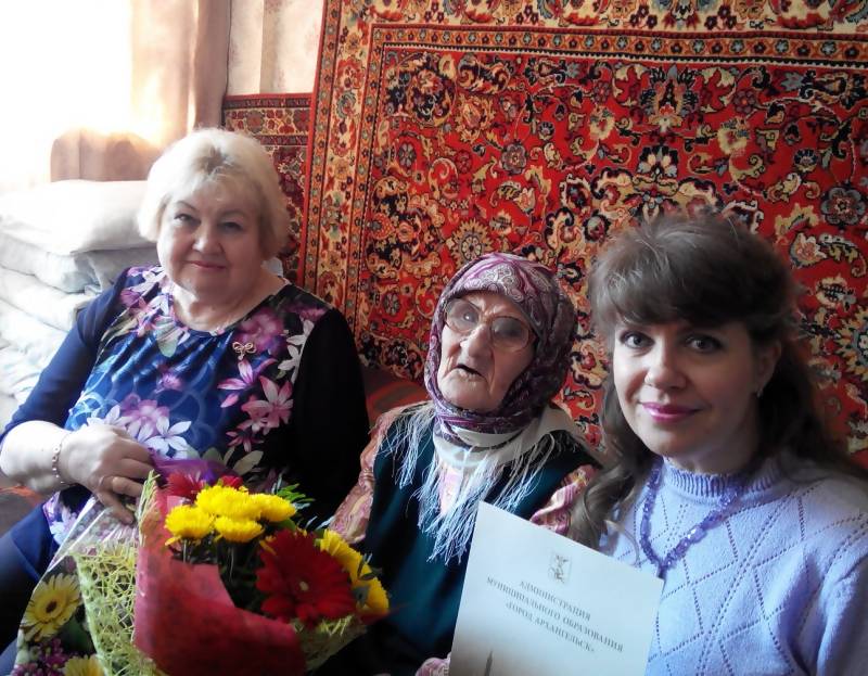 23 апреля 2017 года отметила свой столетний юбилей Татарченко Вера Андроновна. Вера Андроновна приехала в Архангельск из города Новочеркасска Ростовской области. Всю свою жизнь она посвятила семье, воспитав с мужем двух дочерей. Сегодня она окружена вниманием и заботой родных. У Веры Андроновны четверо внуков, два правнука и один праправнук, которому исполнилось уже одиннадцать лет.