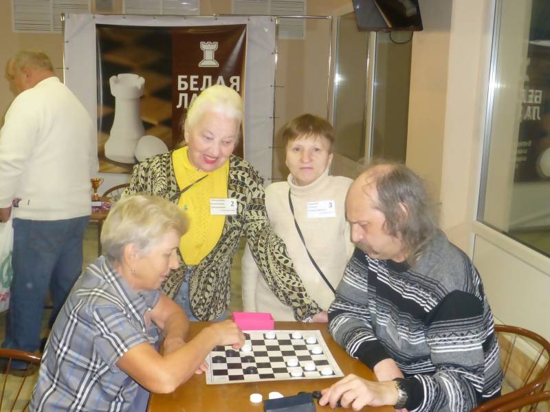 В каждой команде шашистов есть свои чемпионы, есть просто начинающие любители игры. И это очень хорошо. На самом деле все участники соревнований идут на турниры прежде всего ради встречи и общения с друзьями , можно с уверенностью сказать, что данные спортивные мероприятия продляют жизнь нашим ветеранам. Есть особый смысл, спортивный интерес, они ждут каждой встречи с "боевыми друзьями", они делятся своими радостями и невзгодами, все проблемы со здоровьем уходят на второй план и недуги отступают, появляется большое желание - победить! Победить старость, победить одиночество и какие-то бытовые проблемы. Активисты спортивного клуба интеллектуальной игры "Белая ладья и шашечка" при Архангельском городском Совете ветеранов, осознавая большую значимость данных мероприятий, сделали всё, чтобы турниры по игре в шашки и шахматы стали традиционными, потому что это самый доступный вид спорта для людей преклонного возраста. За победные кубки соревновались десять команд из окружных и профессиональных ветеранских общественных организаций. Игра на командное первенство
