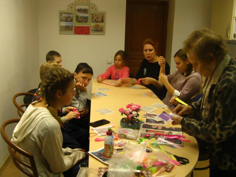 16 января активисты Архангельского городского Совета ветеранов побывали в Социально реабилитационном Центре для несовершеннолетних и встретились с ребятами, для которых давно стали наставниками и старшими друзьями . Все очень ждали встречи! Не виделись больше месяца, поэтому есть что рассказать друг другу. Вместе приняли участие в мастер-классе по рукоделию: наставники порадовались тому, что дети умело пользуются швейными иголками, уверенно и самостоятельно сделали небольшие подарки своими руками. Яркие цветочки из атласных ленточек дети подарят мамам. Пока активистка городского Совета ветеранов - Татьяна Яковлевна Варгасова готовила весь необходимый материал для мастер-класса , ребятам играли в развивающую игру. К всеобщей радости каждая встреча ветеранов-наставников с детьми заканчивается дружным чаепитием, за большим общим столом, по-семейному. Двум мальчишкам-именинникам, которые отметили дни рождения в декабре 2018 года, были вручили небольшие подарки. Также ребятам были переданы раскраски и красочные детские журналы от Администрации города Архангельска.