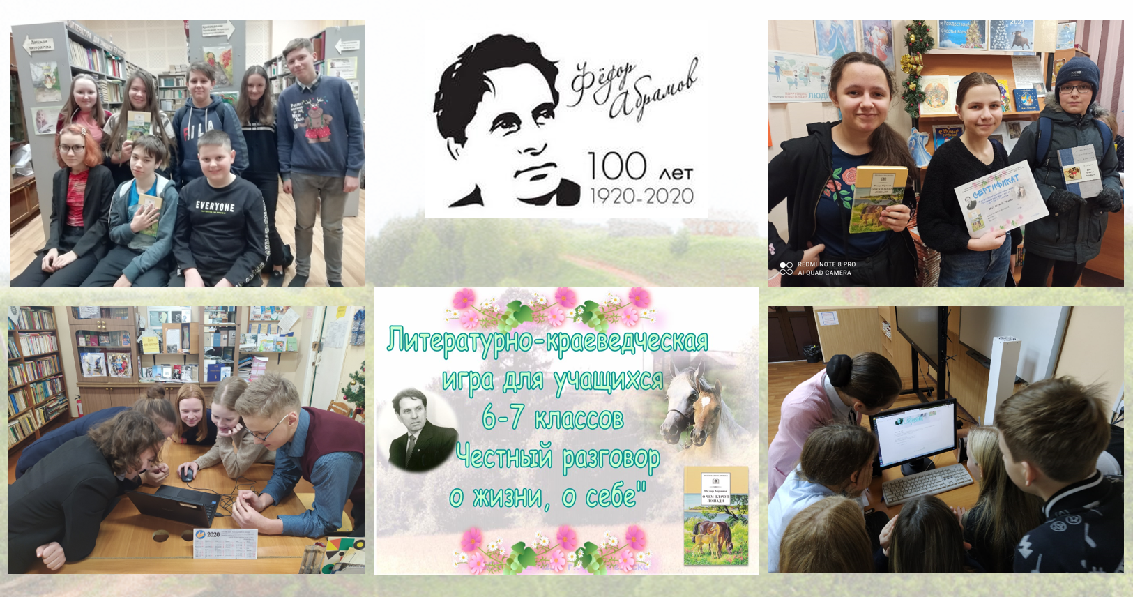 15 декабря в рамках работы опорного учреждения системы образования муниципального образования "Город Архангельск" по проекту "Методическое сопровождение библиотечных работников образовательных организаций города Архангельска в условиях формирования цифровой образовательной среды в школе" (МБОУ СШ № 35) состоялась городская литературно-краеведческая игра "Честный разговор о жизни, о себе", посвященная 100-летию Ф.А. Абрамова.