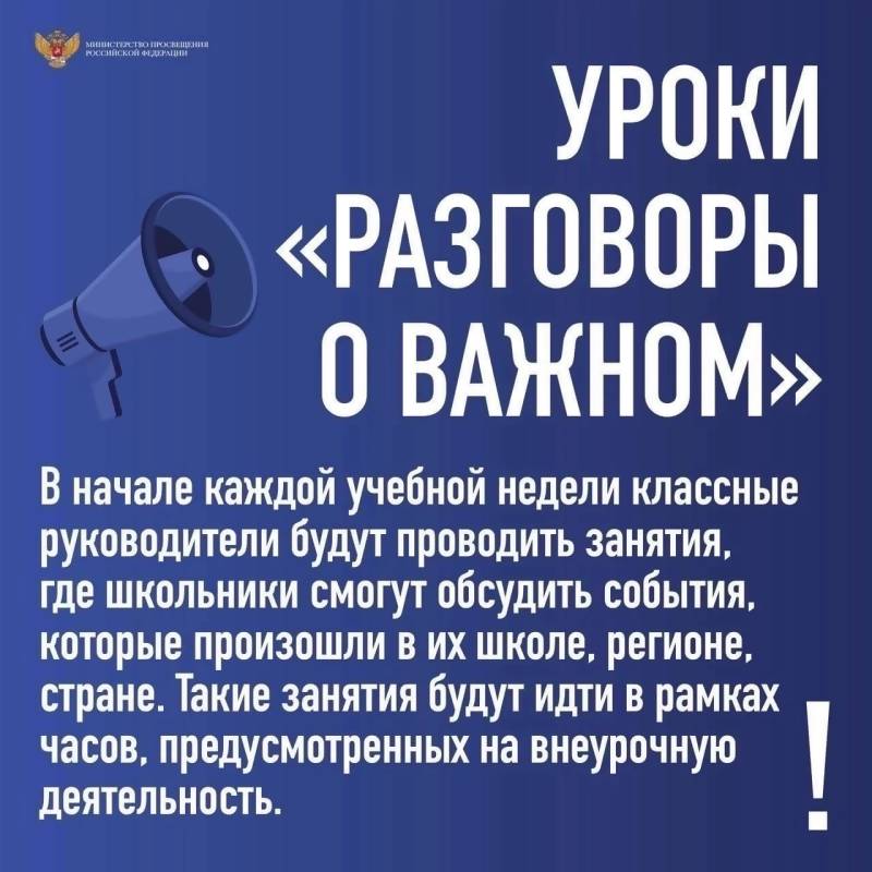Цикл внеурочных занятий "Разговоры о важном" направлен на то, чтобы доносить до ребёнка правдивую информацию по вопросам общественно-политической жизни и помогать детям анализировать информацию, критически