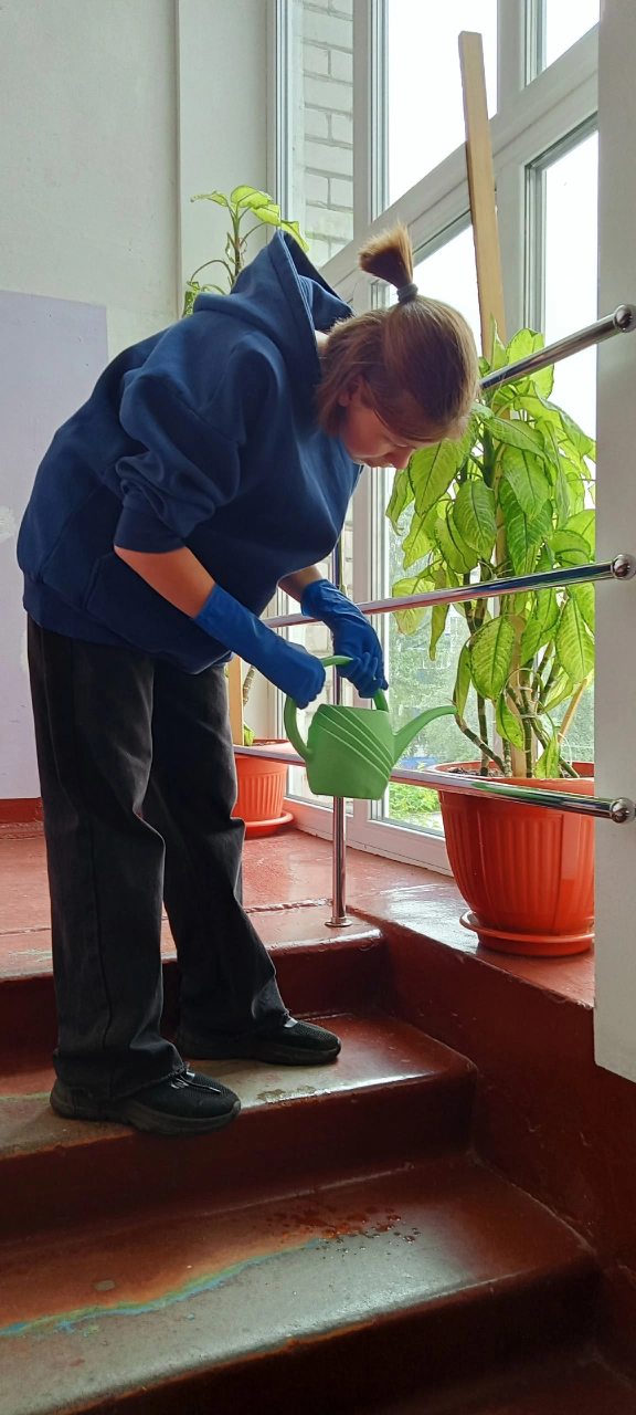 Этим летом ребята выполняли разнообразную и интересную работу. Подростки собирали макулатуру, наводили порядок в помещениях, ухаживали за цветами, помогали готовить кабинеты к экзаменам, сортировали декорации и костюмы для школьного театра.