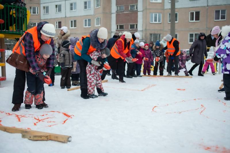 В завершении праздника детям и взрослым было предложено украсить двор яркими красками – нарисовать большую "картину" на снегу с изображением города.