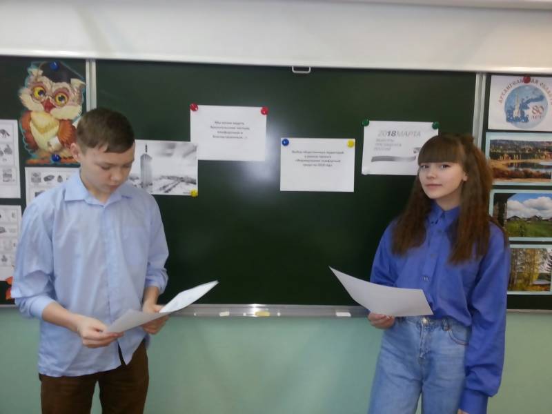 Также на этой неделе во всех классах  архангельских школ № 48, 52, 55, 60, 70, 82 состоялись  классные часы, приуроченные  к проведению второго тура голосования по проекту "Формирование комфортной городской среды".  Классные часы включали в себя беседы, обсуждения, работу в группах по составлению мини-проектов. Подводя итоги мероприятия, педагоги отмечают, что ребятам хочется видеть на территории нашего города больше спортивных площадок, скверов для отдыха.