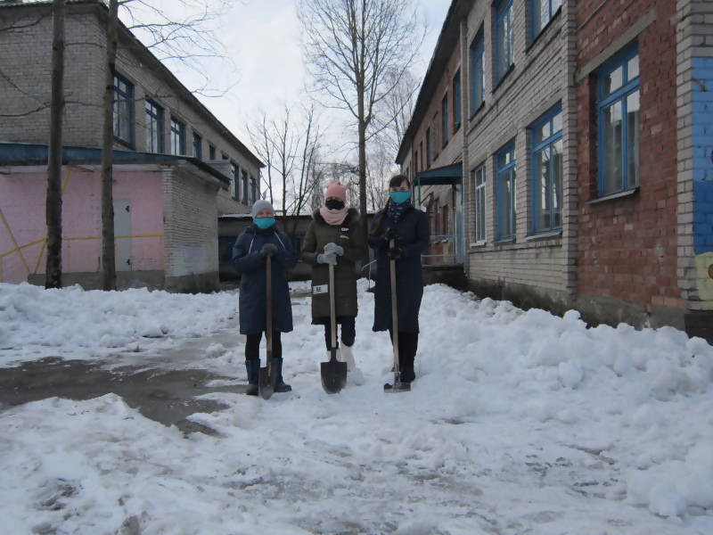 В условиях соблюдения противоэпидемических мероприятий и организации дистанционного обучения учащихся в школе  № 68 продолжается работа по благоустройству территорий. Проводится рыхление снега, уборка мусора.