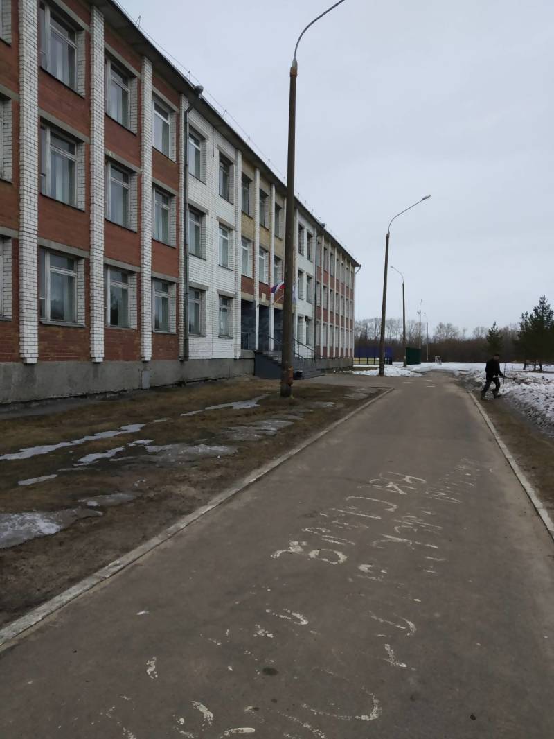 На территория здания школы уже растаял почти весь снег, чисто.