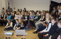 На этот раз гостем и собеседником ребят стал заслуженный артист РФ, ведущий актер театра Сергей Чуркин. Как и на спектаклях Сергея Борисовича, на встрече собрался аншлаг, и малый репетиционный зал, где и проходила встреча, едва смог вместить всех желающих задать свой вопрос артисту. В итоге за час общения ребята успели задать очень много вопросов. Одни интересовались профессиональными секретами актерского мастерства, другие спрашивали гостя о его жизни и планах на будущее. Были и забавные вопросы, на которые зал получал такие же шутливые ответы, но больше всего, конечно, запомнились серьезные вопросы и мудрые, почти философские размышления актера в ответ. В этом, наверное, и есть основное отличие встреч с творческими людьми, когда приходишь просто пообщаться, а уносишь с собой нечто гораздо большее. Следующая встреча в рамках этого проекта состоится уже в новом 2012 году.