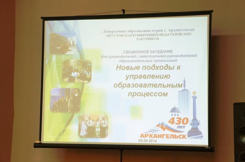 9 сентября 2014 года состоялось секционное заседание августовской конференции для руководителей и заместителей руководителей образовательных организаций, в котором приняли участие порядка 250 слушателей из школ, детских садов и учреждений дополнительного образования города Архангельска.
