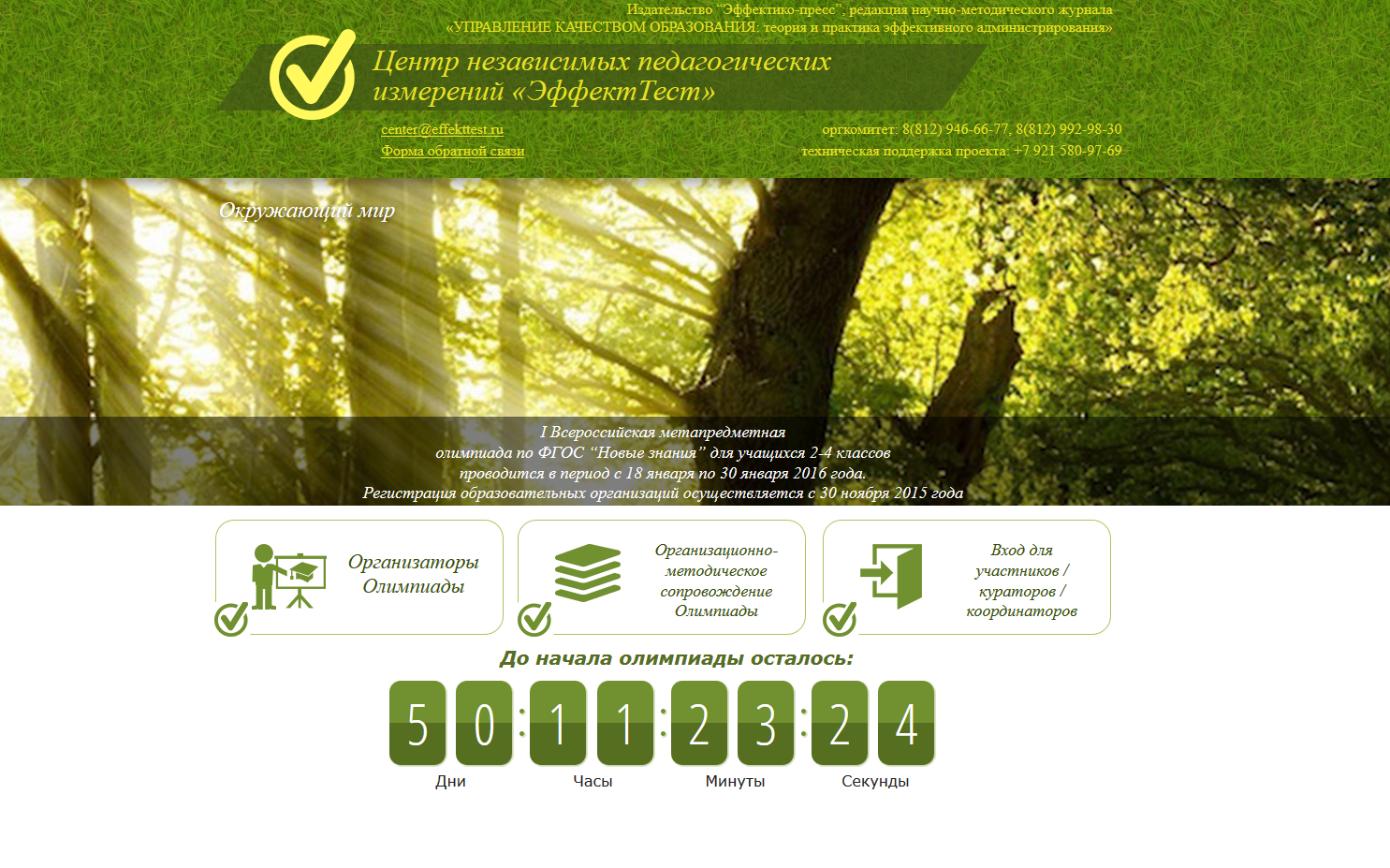 Олимпиада организована Издательством "Эффектико-пресс", редакцией издаваемого им российского журнала "УПРАВЛЕНИЕ КАЧЕСТВОМ ОБРАЗОВАНИЯ: теория и практика эффективного администрирования", при участии Российского государственного педагогического университета имени А.И.Герцена. Техническим оператором является Центр независимых педагогических измерений "ЭффектТест".