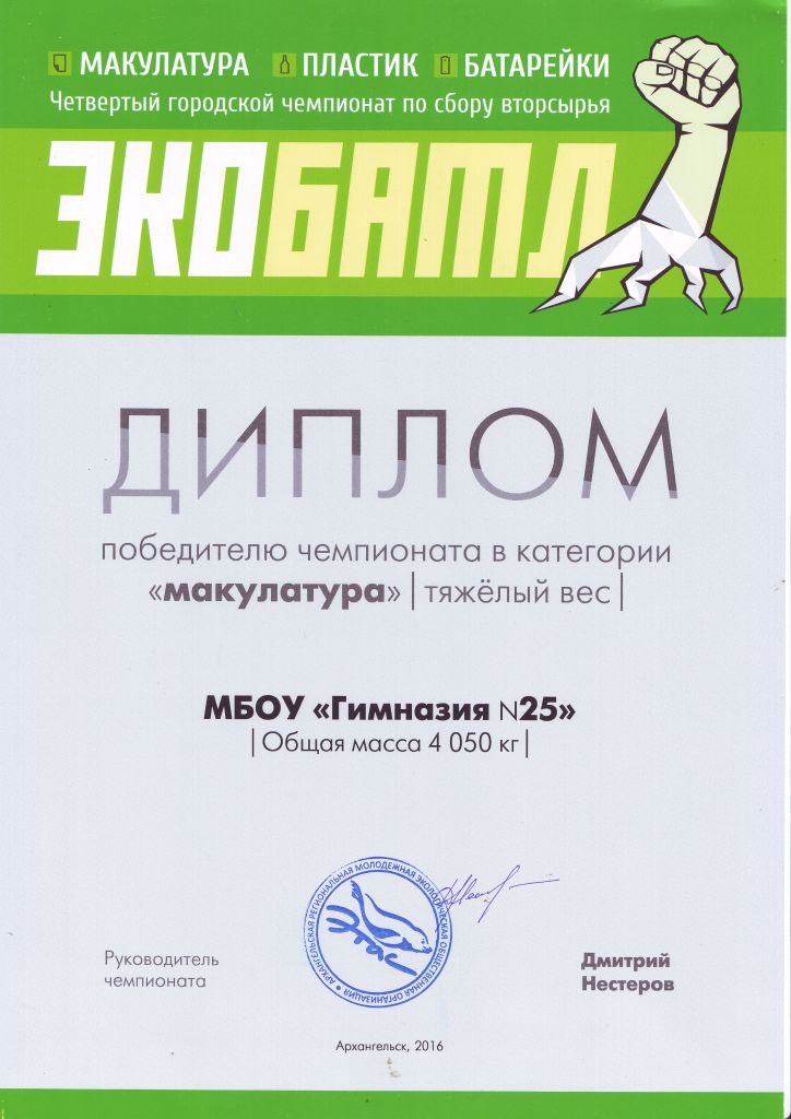 Общий результат чемпионата составил 28 тонн 100 кг макулатуры, 480 кг пластика и 44209 батареек. Напомним, что в 2015 году участники «ЭкоБатла» сдали 75 тонн 815 кг макулатуры, 382 кг пластика, 13 760 батареек.