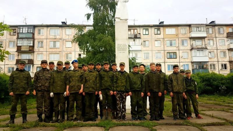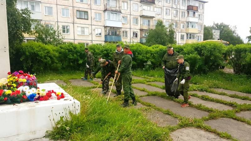 Участники проекта "Формула успеха" и курсанты оборонно-спортивного лагеря "Архангел" приняли участие в акции "Чистый обелиск" у памятника воинам, погибшим в Великую Отечественную войну (ул. Дежневцев, д. 3