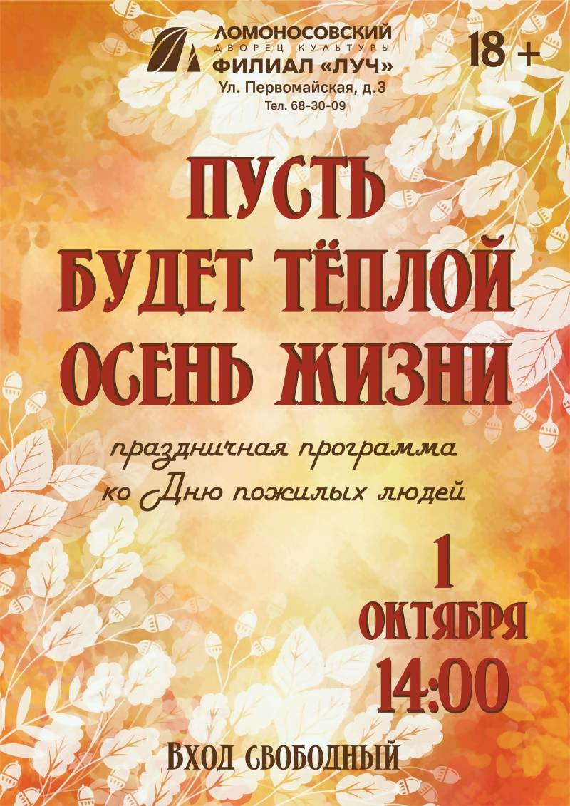 Международный день пожилых людей отмечается ежегодно 1 октября с 1991 года. Учреждениями культуры и библиотеками города Архангельска подготовлены мероприятия к этому дню! Открывайте афишу мероприятий и выбирайте интересное для вас событие!