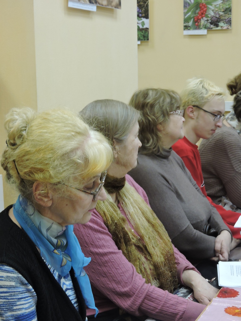 Участники мастерской анализировали поэтические произведения, отмечая их достоинства и недостатки. Автор услышал много полезных советов и рекомендаций. А затем все желающие прочитали свои новые стихи и услышали полезные советы и пожелания, касающиеся их творчества. Очень радостно, что в мастерскую приходят молодые авторы и участники других клубов и объединений. К примеру, в этой встрече приняли участие Галина Соловьева и Любовь Кузьмина (литературный клуб «Родник» Библиотеки №10 округа Варавино-Фактория) и молодой автор Екатерина Дмитриева. Также участницей мастерской уже не в первый раз стала поэт и радиожурналист Наталья Леонович.