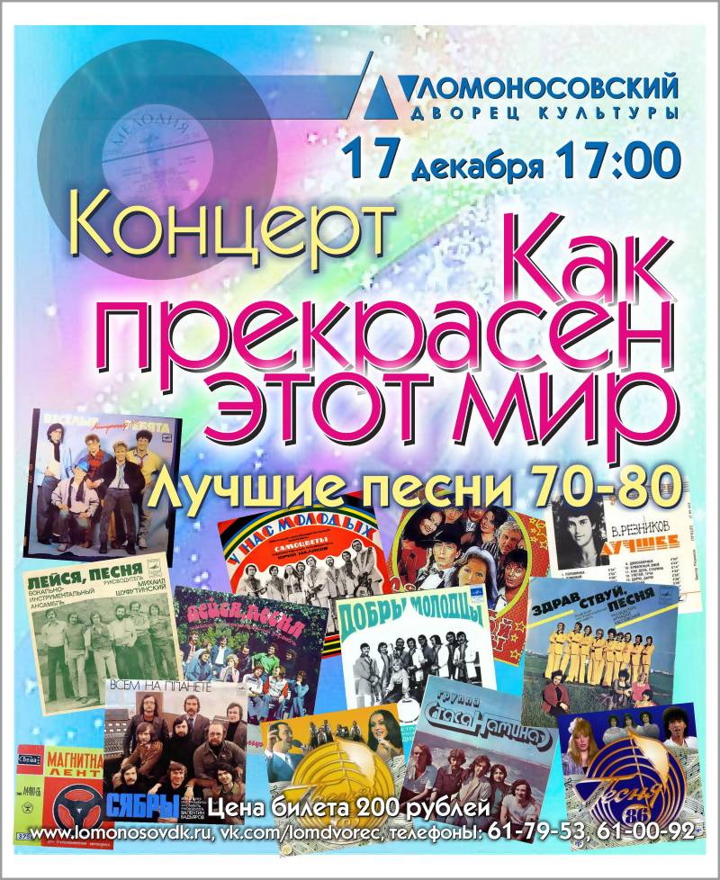 В воскресенье, 17 декабря в 17 часов на концерте «Как прекрасен этот мир» прозвучат любимые песни советской эстрады 70-80.