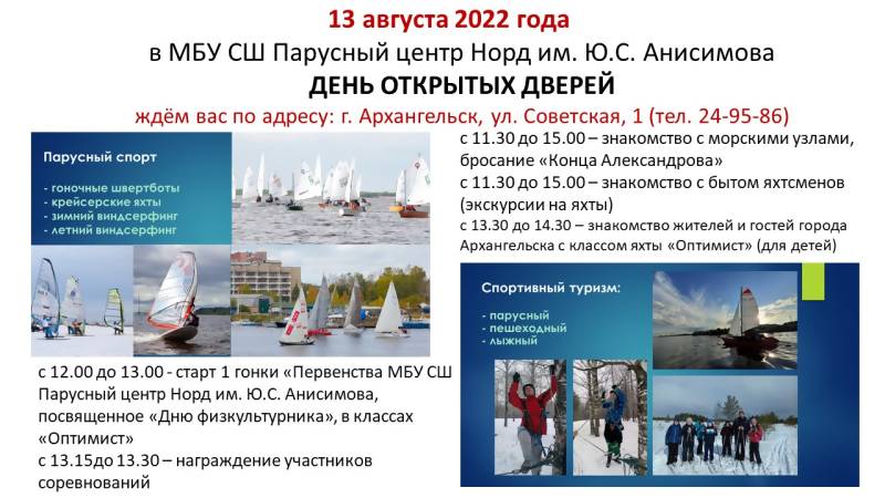 День открытых дверей в МБУ СШ Парусный центр Норд им. Ю.С. Анисимова