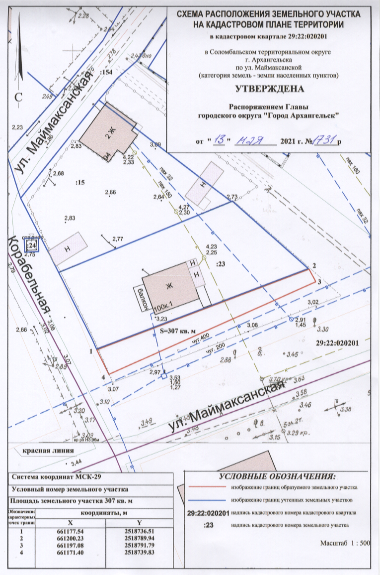 Распоряжение от 13 мая 2021 г. № 1731р "О предоставлении разрешения на условно разрешенный вид использования земельного участка, расположенного в Соломбальском территориальном округе г.Архангельска по улице Маймаксанской, об утверждении схемы расположения земельного участка"