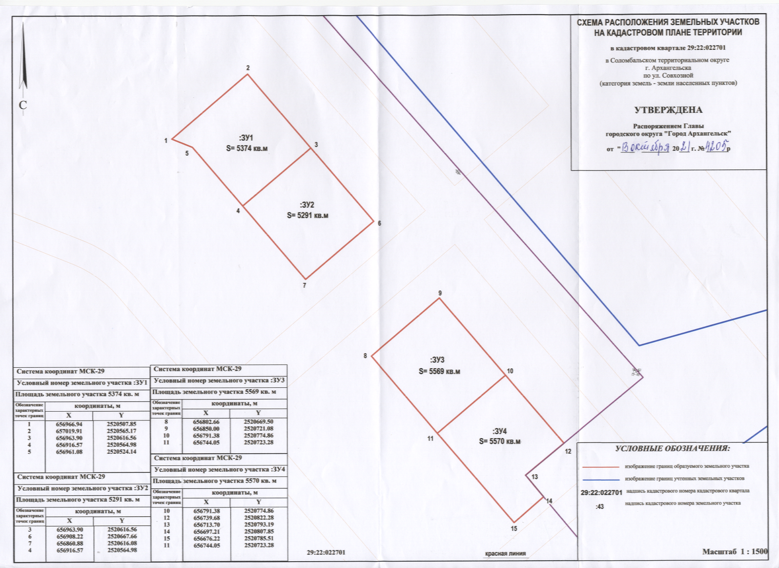 - Распоряжение от 15 сентября 2025 г. № 4380р "О предоставлении разрешения на условно разрешенный вид использования земельных участков, расположенных в Маймаксанском территориальном округе г. Архангельска по ул. Кольцевой, об утверждении схем расположения земельных участков"