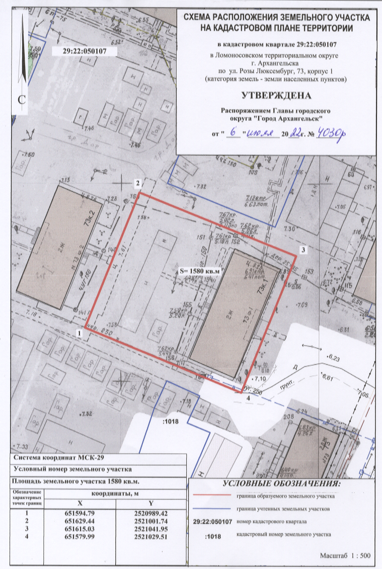 земельного участка в кадастровом квартале 29:22:050107 площадью 1 580 кв. м, расположенного в Ломоносовском территориальном округе