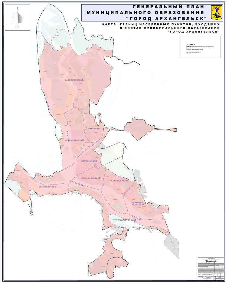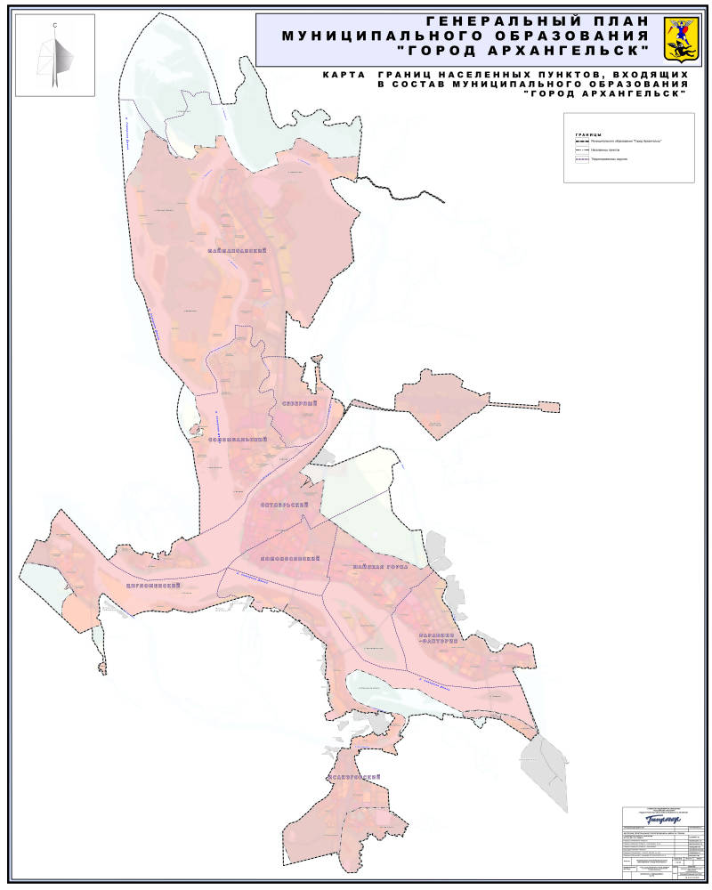 Карта границ населенных пунктов, входящих в состав муниципального образования «Город Архангельск», М 1:25 000