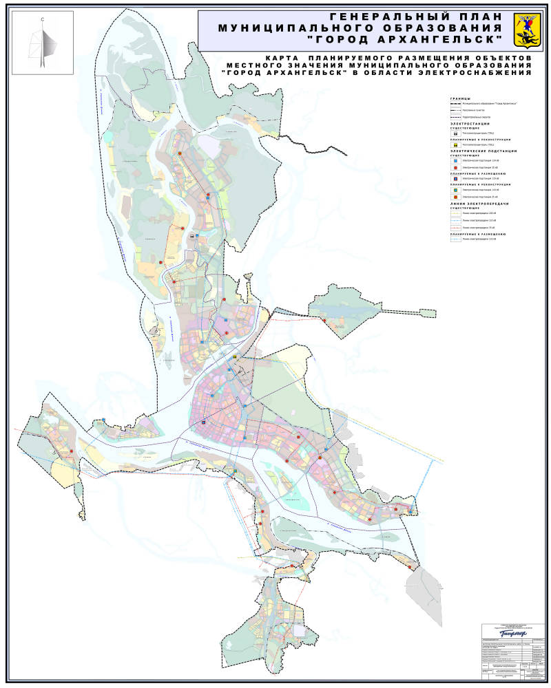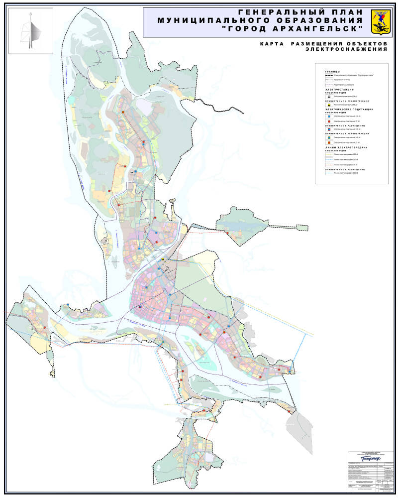 Карта планируемого размещения объектов местного значения муниципального образования «Город Архангельск» в области электроснабжения, М 1:25 000