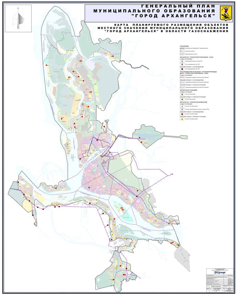 Карта планируемого размещения объектов местного значения муниципального образования «Город Архангельск» в области газоснабжения, М 1:25 000