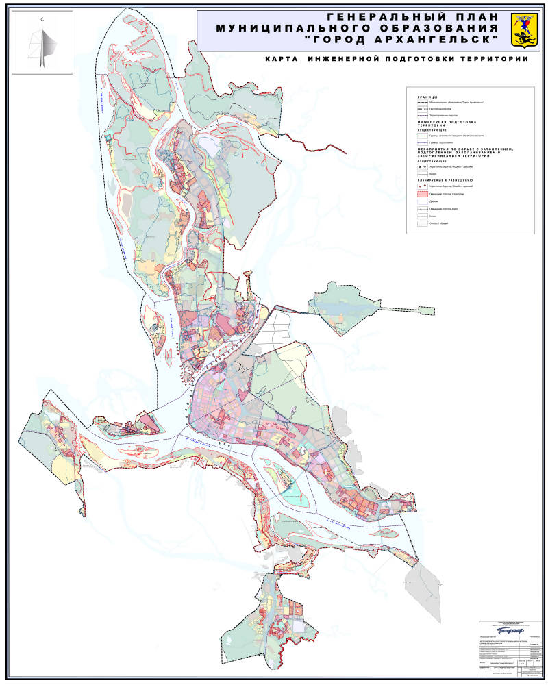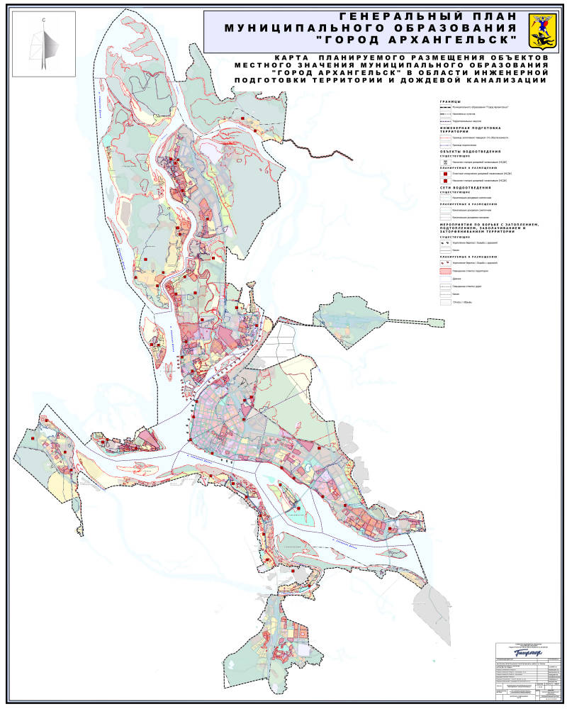 Карта планируемого размещения объектов местного значения муниципального образования «Город Архангельск» в области инженерной подготовки территории и дождевой канализации, М:25 000