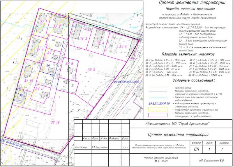 2. Адрес месторасположения земельного участка: г. Архангельск, ул. Победы, д. 15. Границы земельного участка 29:22:012006:ЗУ5 определены проектом межевания территории муниципального образования "Город Архангельск" в границах ул.Победы, утвержденным распоряжением Главы муниципального образования "Город Архангельск" от 07.02.2018 № 447р: