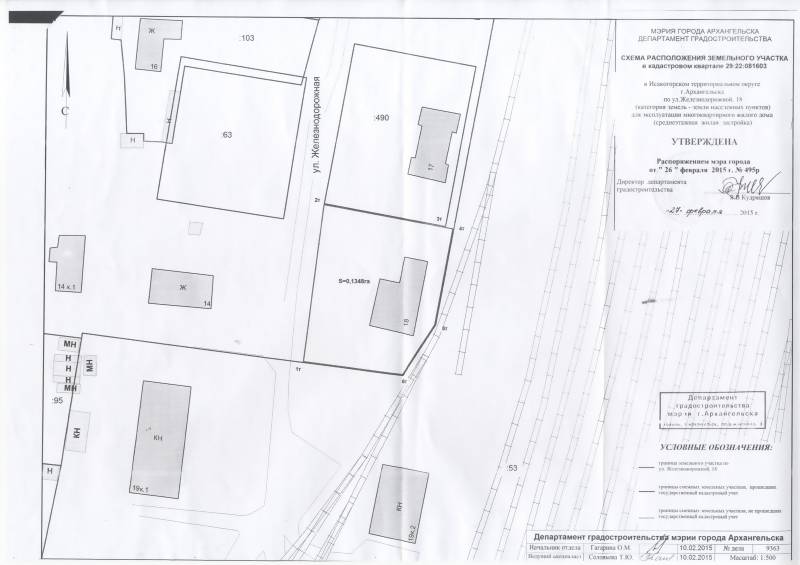 2. Адрес месторасположения земельного участка: г. Архангельск, ул. Железнодорожная, д. 18. Данный земельный участок расположен в кадастровом квартале 29:22:081603. Утвержденная схема расположения земельного участка: