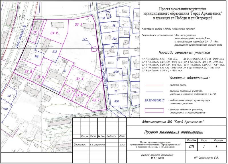 2. Адрес месторасположения земельного участка: г. Архангельск, ул. Победы, д. 20. Границы земельного участка 29:22:012008:ЗУ8 определены проектом межевания территории муниципального образования "Город Архангельск" в границах ул. Победы и ул. Огородной, утвержденным распоряжением Главы муниципального образования "Город Архангельск" от 21.03.2018 № 846р: