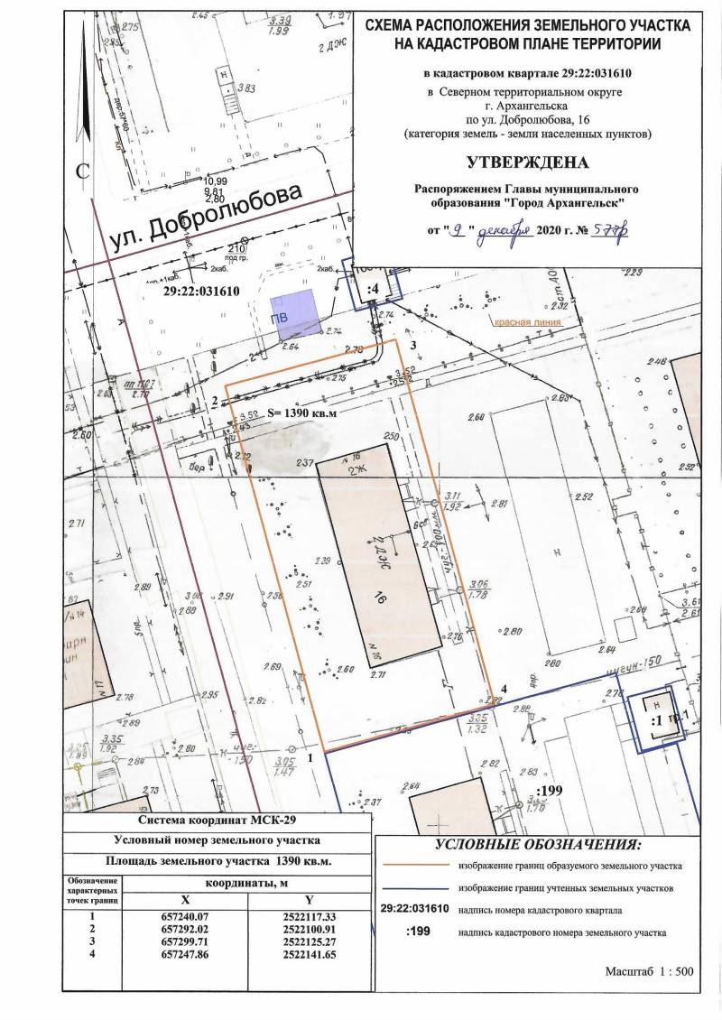 д. 16. Данный земельный участок расположен в кадастровом квартале 29:22:031610. Утвержденная схема расположения земельного участка: