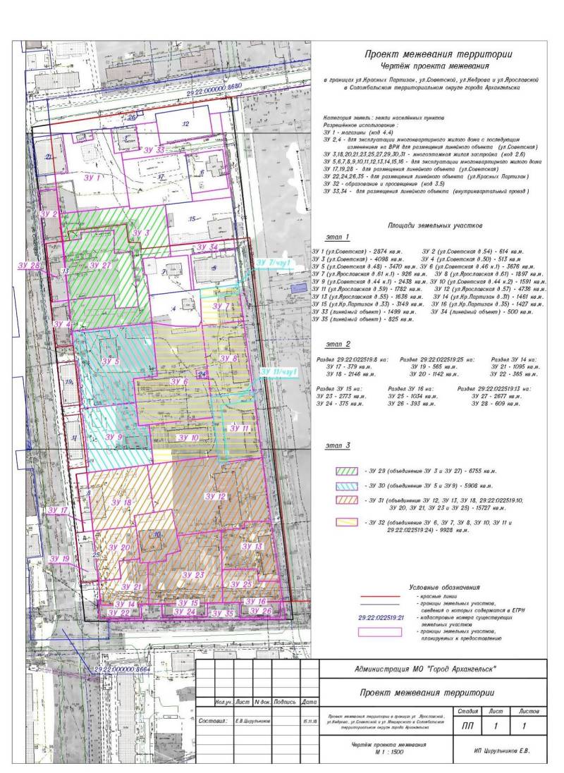 корп. 1. Границы земельного участка 29:22:022519:ЗУ6 определены проектом межевания территории муниципального образования "Город Архангельск" в границах ул. Красных партизан, ул. Советской, ул. Кедрова и ул. Ярославской площадью 6,5206 га, утвержденным распоряжением Главы муниципального образования "Город Архангельск" от 11.10.2019 № 3564р:
