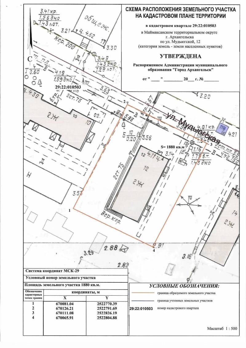 д. 12. Данный земельный участок расположен в кадастровом квартале 29:22:010503. Планируемая к утверждению схема расположения земельного участка: