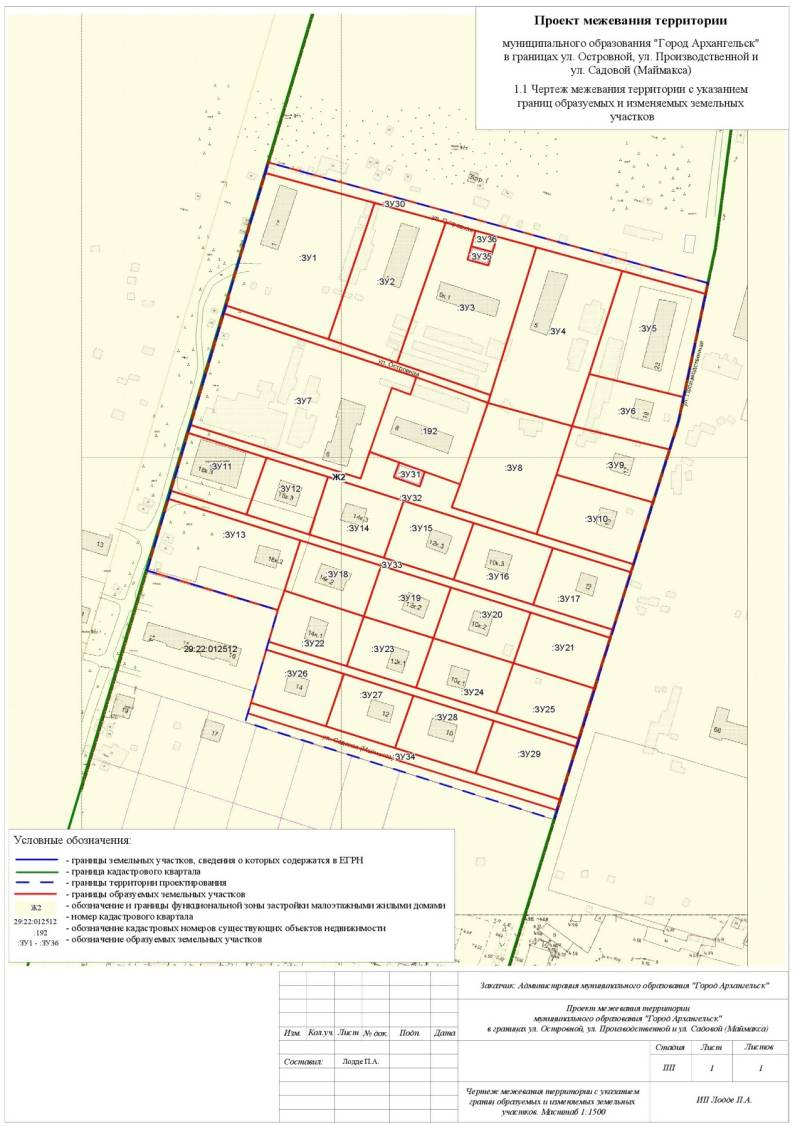 ул. Производственной и ул. Садовой (Маймакса) площадью 7,1123 га, утвержденным распоряжением Главы городского округа "Город Архангельск" от 26.05.2022 № 3023р: